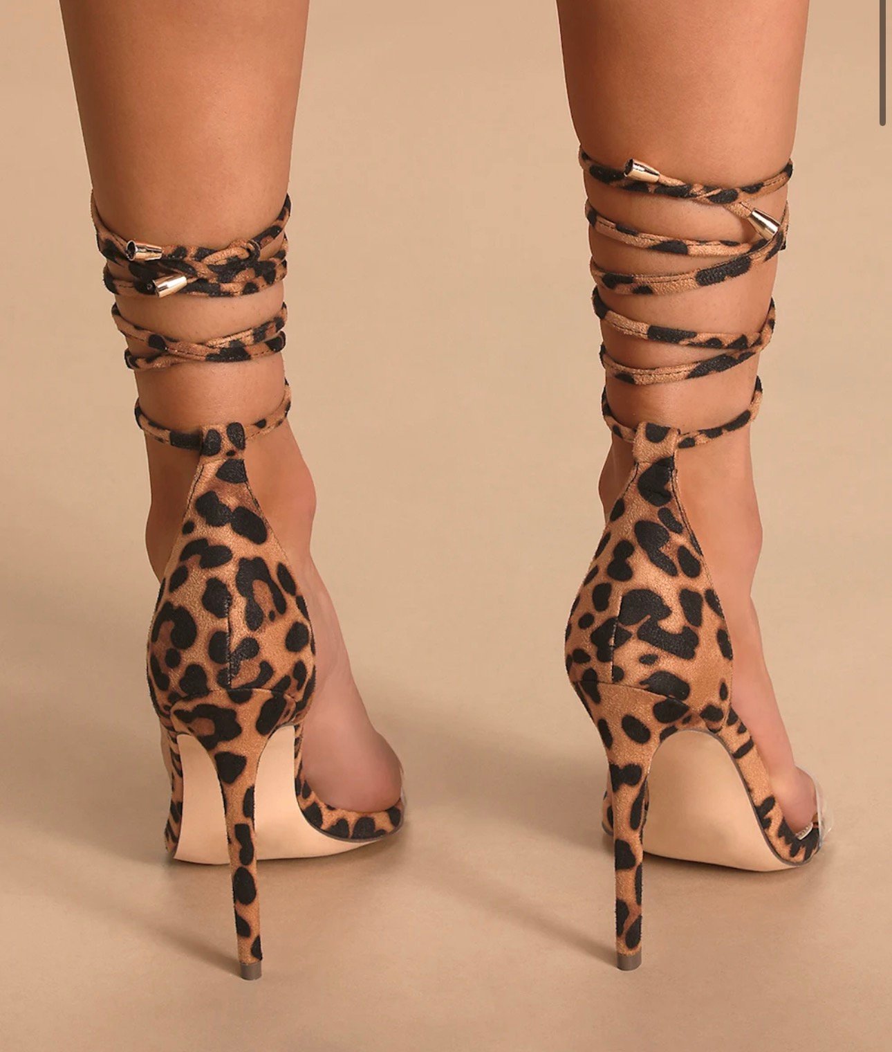 Combine all of your favorite trends in one sexy shoe ... the Lulus Ledah Leopard Suede Lace-Up Heels! Velvety faux suede, in an on-trend leopard print, starts at a peep-toe upper (with a clear, lucite toe strap) and carries into a matching heel cup with long tying laces.